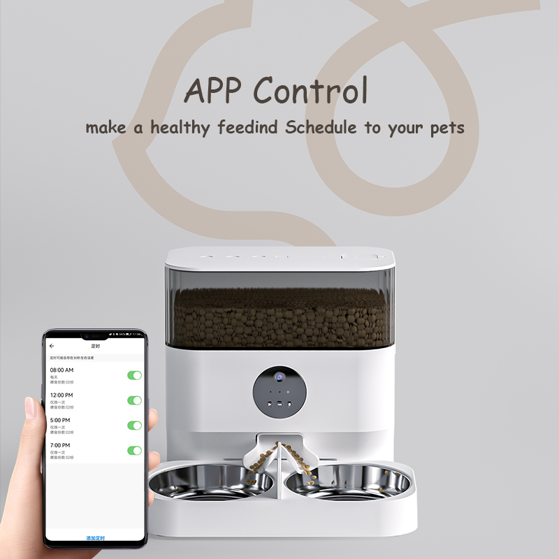 2.4G WiFi Enabled Smart Food Dispenser with Stainless Steel Double Food Bowls